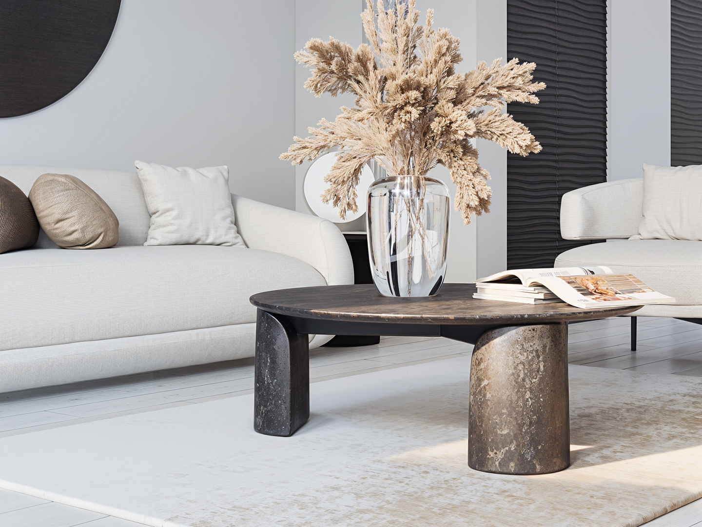 Keep surrounding furniture minimal — avoid bulky coffee tables or large armchairs that compete for space.